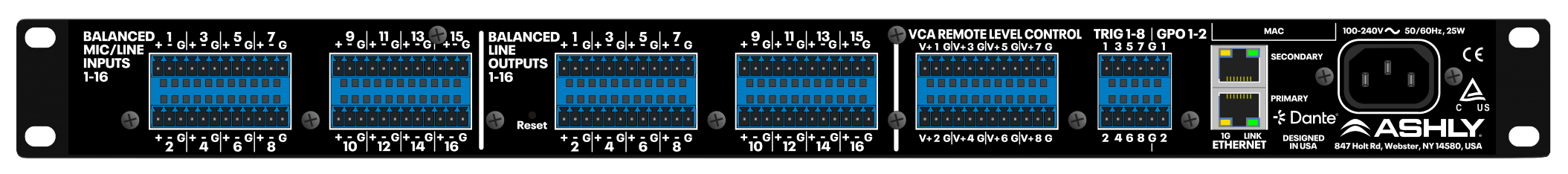 The AQZ32 is the first product to integrate AquaControl™ with Dante® Embedded technology, significantly enhancing its digital I/O capabilities. This integration allows seamless audio routing to and from other Dante-enabled devices, making the AQZ32 a versatile addition to any audio setup. Powered by Ashly’s next-generation AquaControl™ DSP engine, the AQZ32 offers an intuitive, web-browser based interface that requires no specialized training or certification, getting you up and running quicker and smoother.