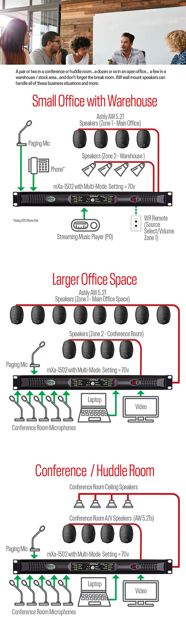 AW’s have HOTEL LOBBY written all over them. Also public spaces such as museums, aquariums, college common areas, and terminals. They’re part of an Ashly amp/processor ecosystem that provides a full range of DSP including noise masking.
