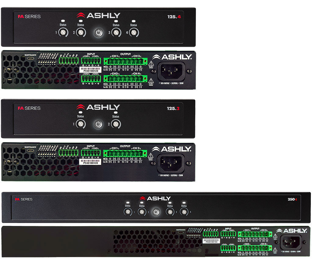 THE FA SERIES continues Ashly’s reputation for bullet-proof reliability. Put one under a conferece room table or on a wall behind a 75” monitor and the amps will outlast the table or TV. Along with performance and reliability, FA’s small form factor gives you the flexibility to meet the needs of a wider range of projects and expands the Ashly lineup for more diverse options.