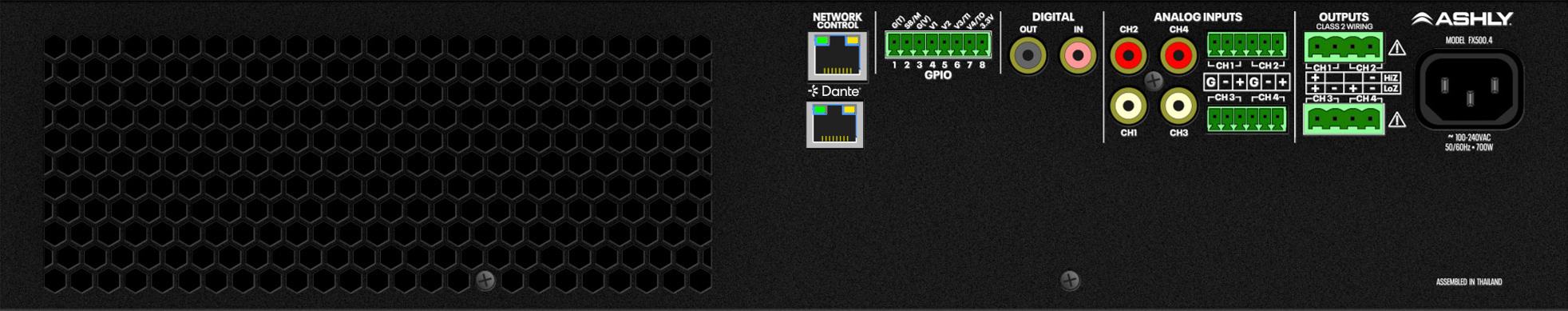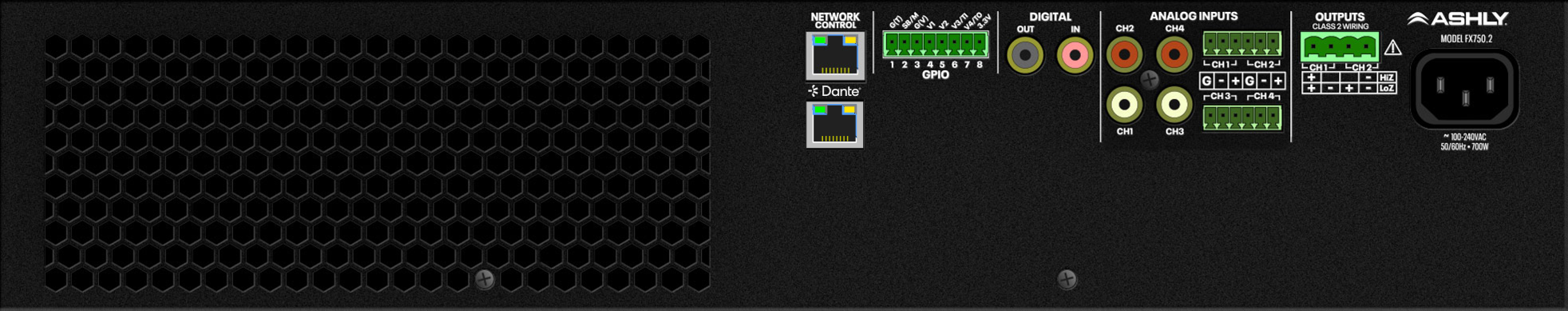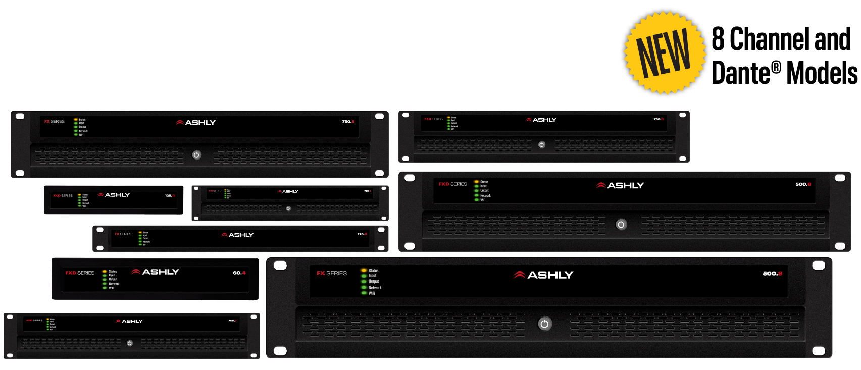 Ashly’s FX comes in three configurations: 1/2 Rack Units (RU) for fitting into those tight spaces where other high-powered amps won’t go. Next up are 1RU models for slightly less space constrained installations. And for when you need the “big guns”, the 2 RU models deliver power enough for even the largest speakers in your system (like those big subs). All FX models are lightweight for their power levels (the 2,000W FX 500.4 is only 16.5 lbs!). FX does more, in a smarter, more comprehensive package.