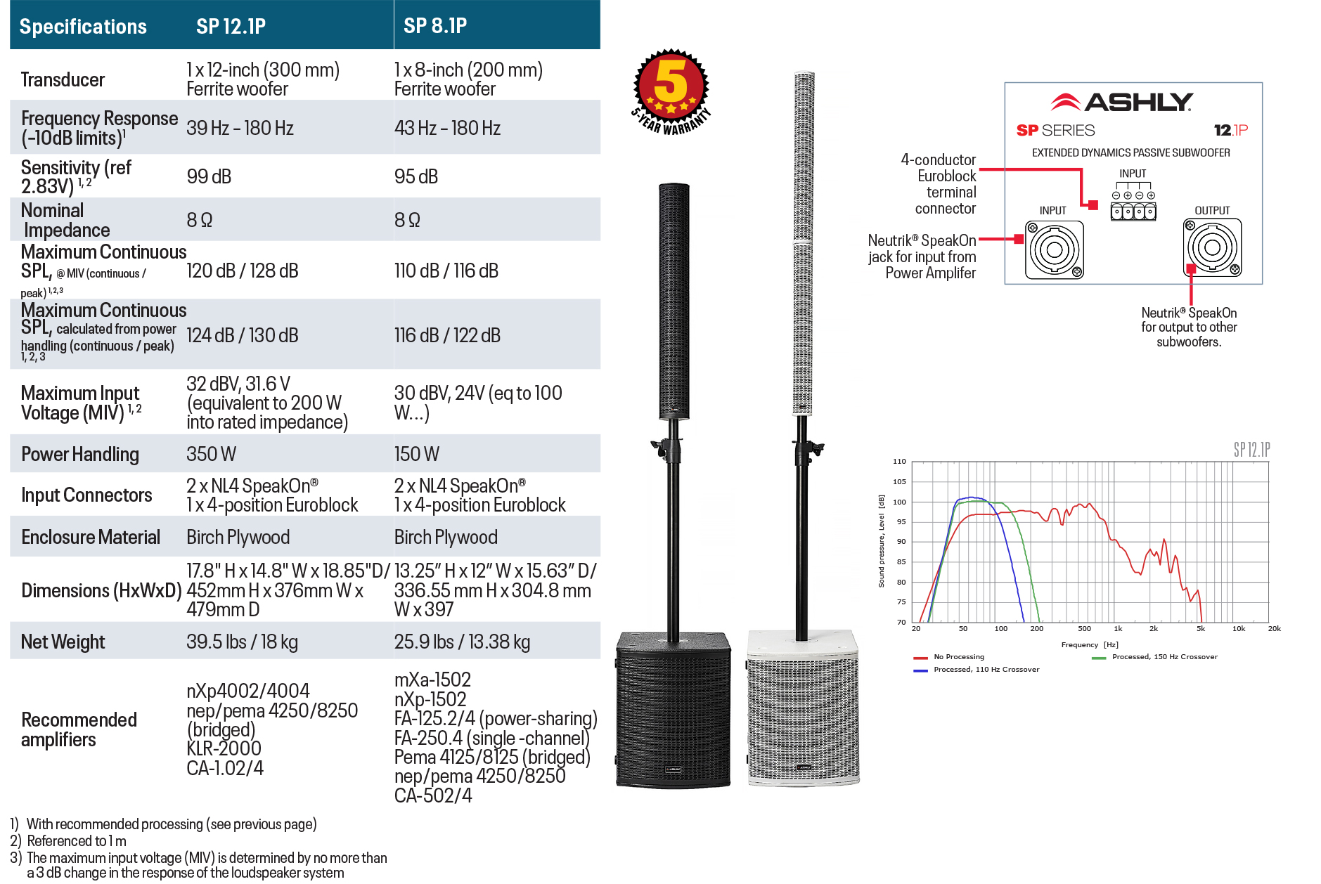 + matching SP 8.1P or SP 12.1P Subwoofers