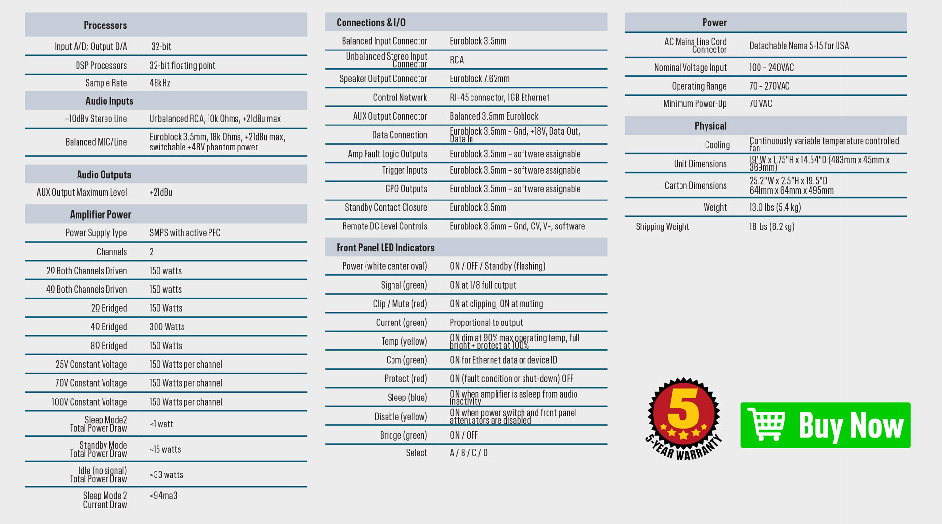mXa-1502: 2 x 150W power and full DSP in one rack space!
