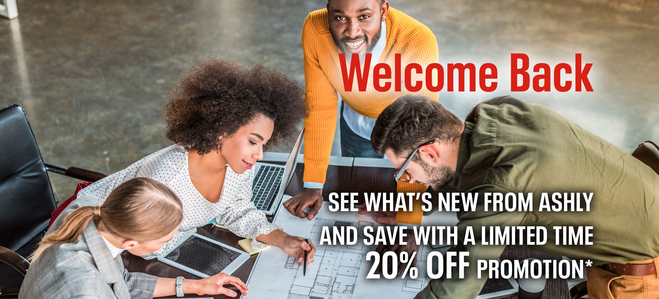 Exclusive Limited Time Offer – There has never been a better time to try Ashly again. Great new products, same great team and for a limited time, we’re offering you an exclusive deal: